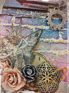Back to this posting. Here's a project for Nov Papier Dt update. Sharing an altered canvas using paint, mists, G45 papers, Mod podge, masks, embossing powder, medium gel, texture mists etc. All the works.